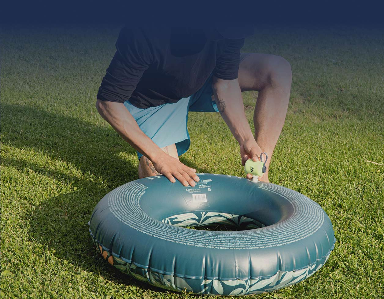 From pool loungers and queen-size air beds to beach toys and camping pillows, the Kona Mini has you covered. Five snap-on adapters come in the box, matching the valves used on most large inflatables—so whatever you pack, one tiny pump handles it all.
